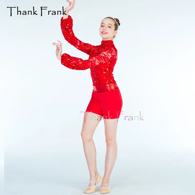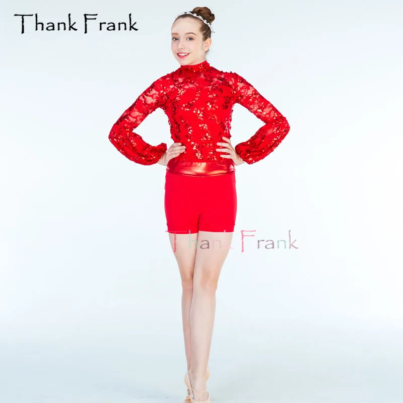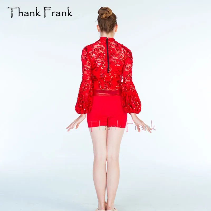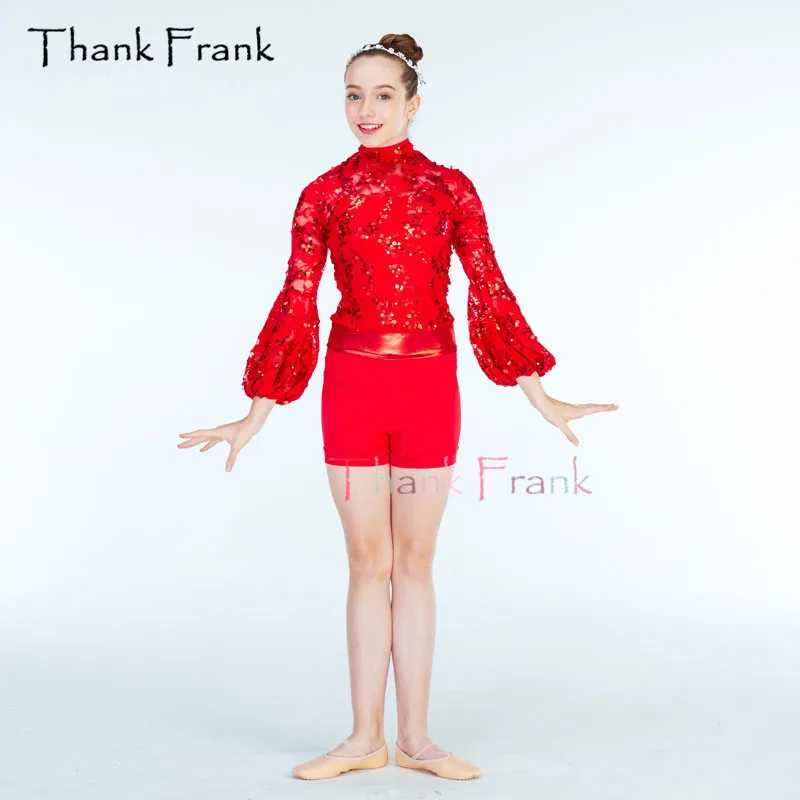 Big Offer Lace Sequin Jazz Dance Costume Chinese Red Lantern Sleeve Modern Contemporary Clothing C26