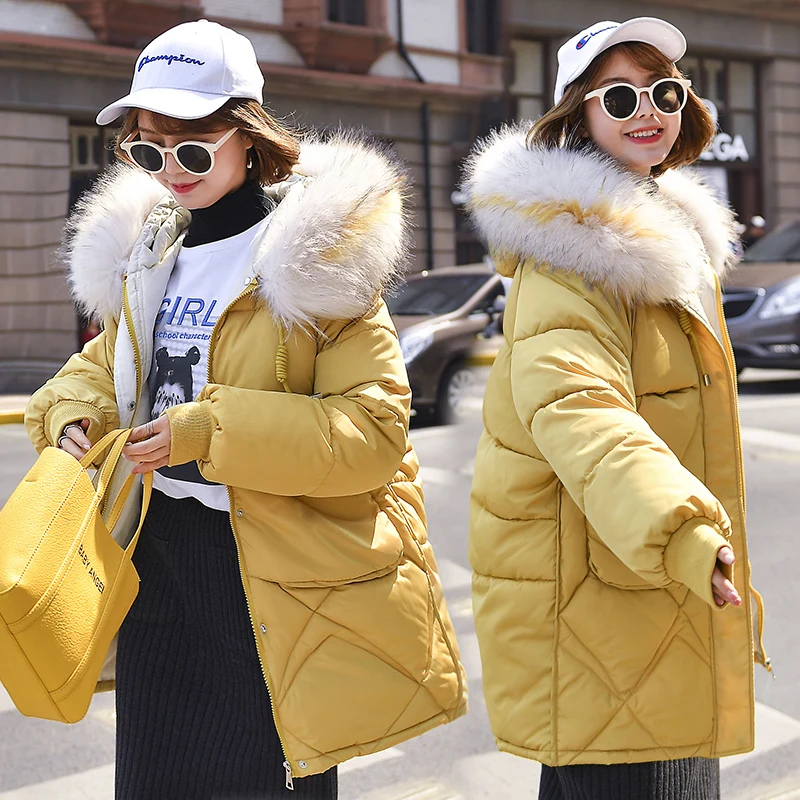 Hot Promo Warm Winter Jacket Women 2019 Fashion Hooded Fur Collar Down Cotton Coat Women Korean Solid Color L